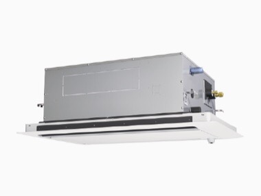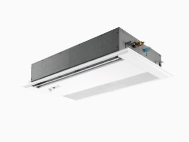 そんな時は天井カセット1方向形を選定し、片側に寄せて配置します。こちらも事務所や店舗の客席などで使用されています。