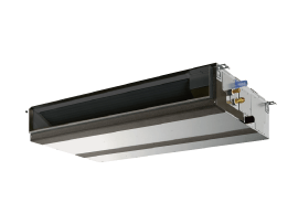 デザインの都合上天井に空調機があらわになることを避けたい時はこのビルトイン形を選定して写真で丸い穴が見えますが、そこにダクトを取付けて延長し吹出口を取付けます。