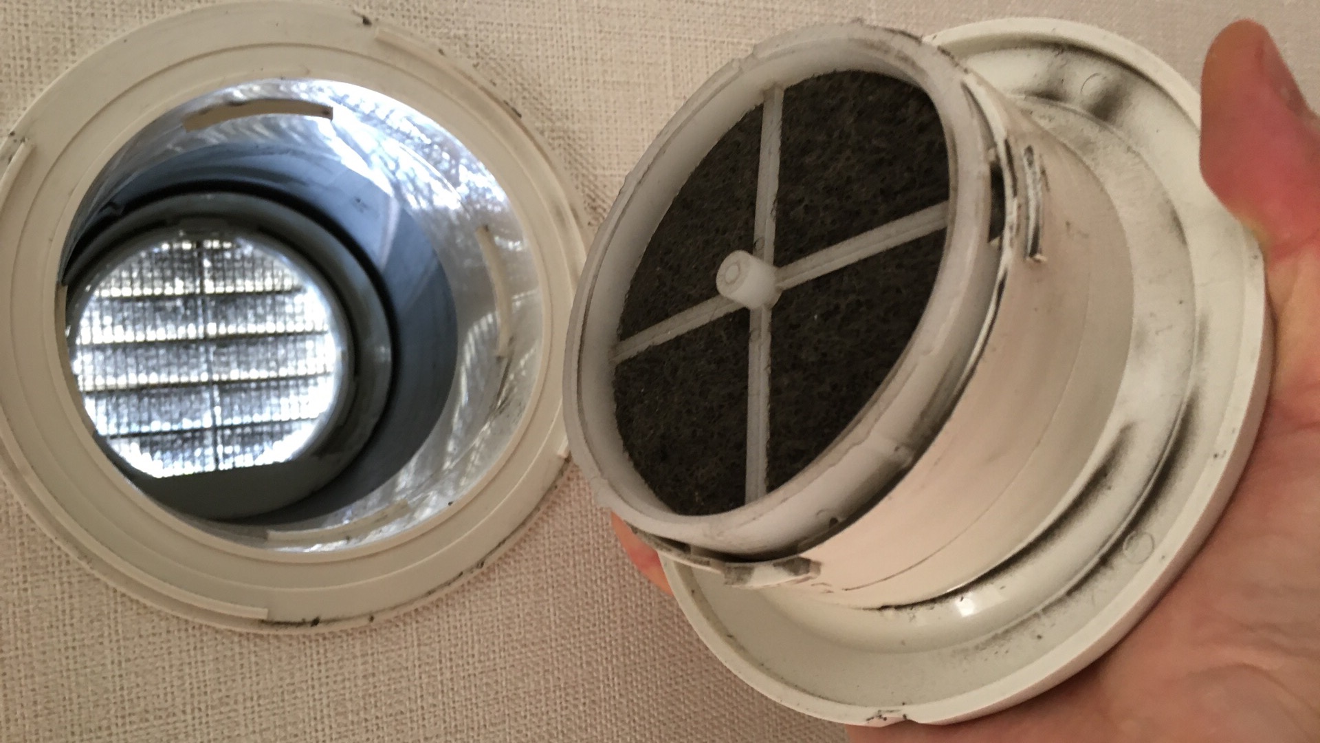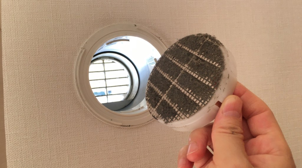 給気口にフィルターが付いているタイプが多いですが、このフィルターも放置していると目詰まりします。