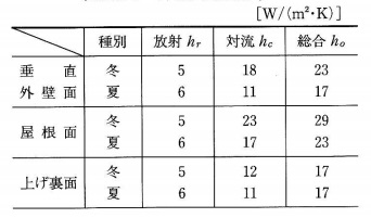 h0:室外側壁表面での表面熱伝達率 [W/(m2・K)]