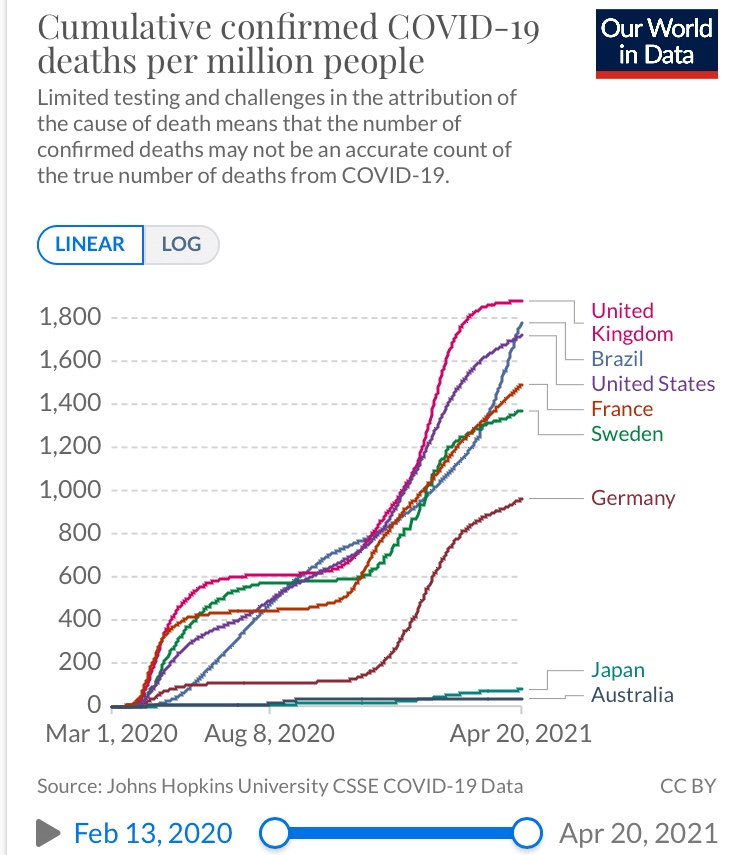 その理由は他国との死者数の比較のグラフやネットなどに出ている記事をつぶさに見ていけば誰でもわかります。