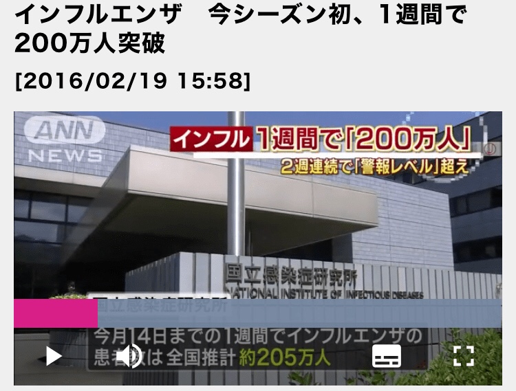 インフルエンザは1月になると毎年1週間で200万人の感染者が出ていた