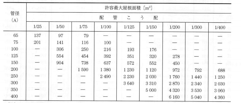 表2より配管径125A 勾配1/200 で対応可能ということがわかります。