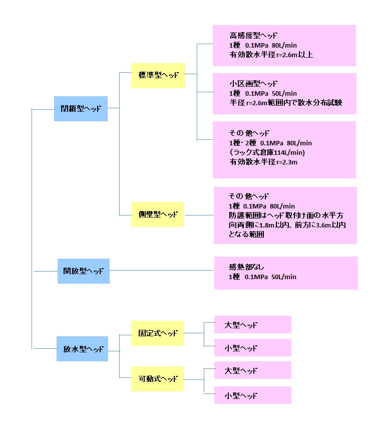 閉鎖型ヘッドの1種と2種というのは感度の種別のことで、1種はr=2.3m以上、高感度であればr=2.6m以上のものもあります。
