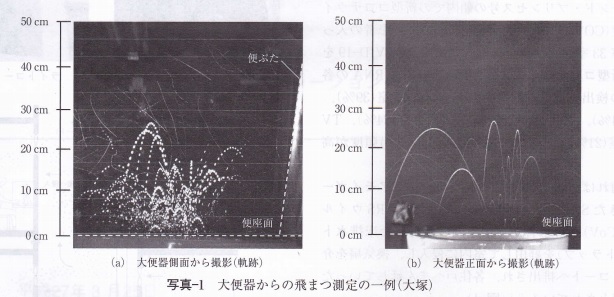 大便器洗浄をする際の洗浄水の飛沫による汚染も指摘されています。