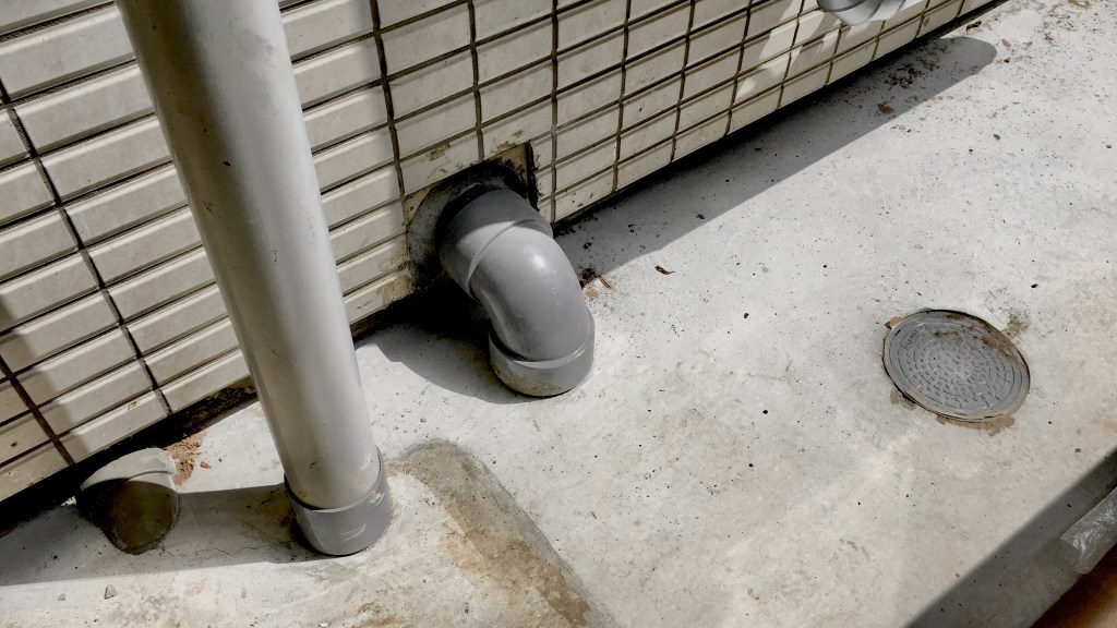 場所が狭くてマスが設置できなければ塩ビ管でUトラップを組むなどで対処します。