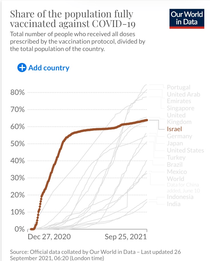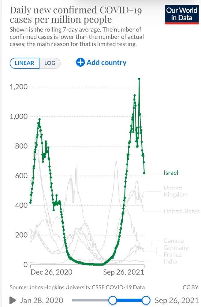 このグラフを見たら全ての人がイスラエルにおいてはワクチンは効果がなかったと言うでしょう…嘘つきでない限りは。