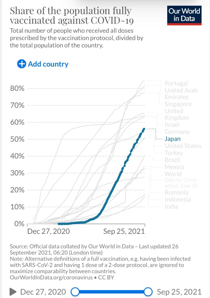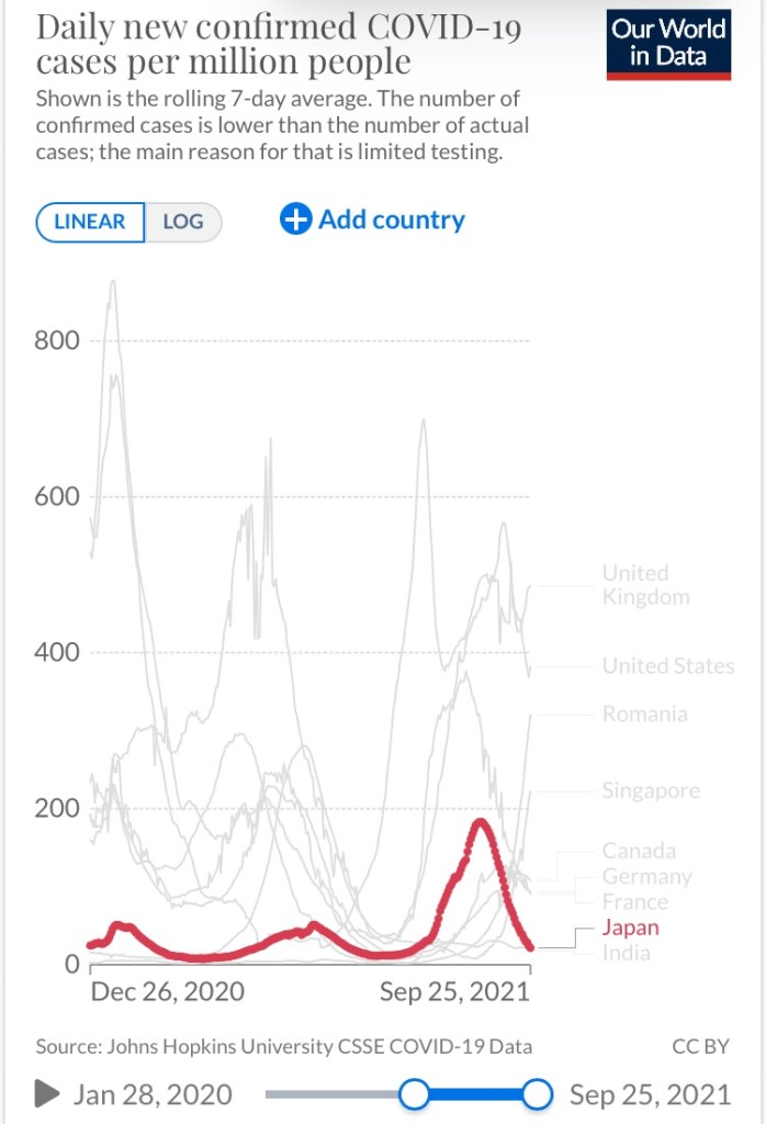 しかし現在、ワクチン接種を推進した他の国のような感染者数の増大は見られず収束している感すらあるデータです。