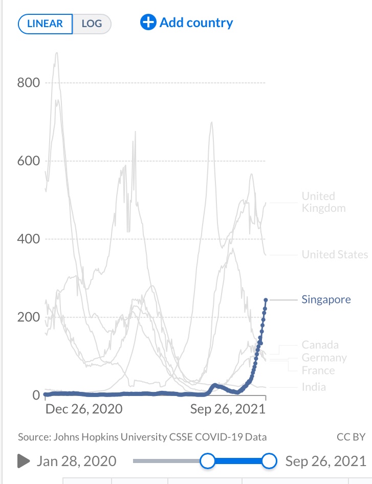 シンガポールでもワクチン接種が進んだ後に感染者が増えています。