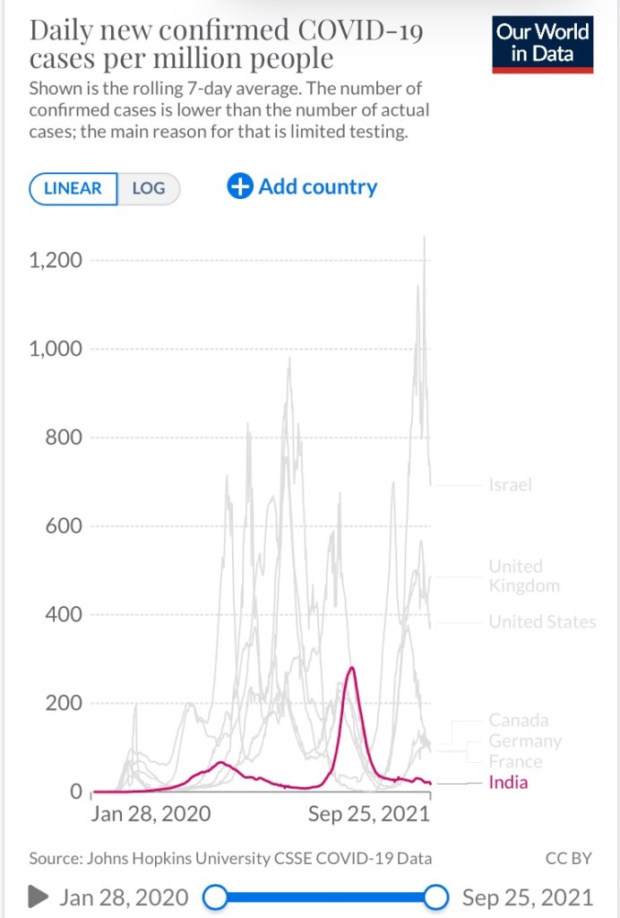 次にワクチン接種率の少ないインドを見てみます。