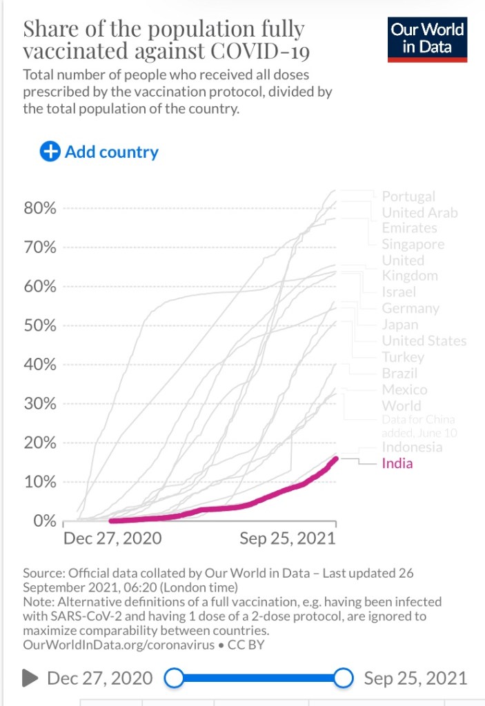 3月から4月頃、ホーリー祭という名の国をあげての祭りの後に感染者が増大しましたがその後、ワクチン接種はそんなに進まず10%台で推移しています。