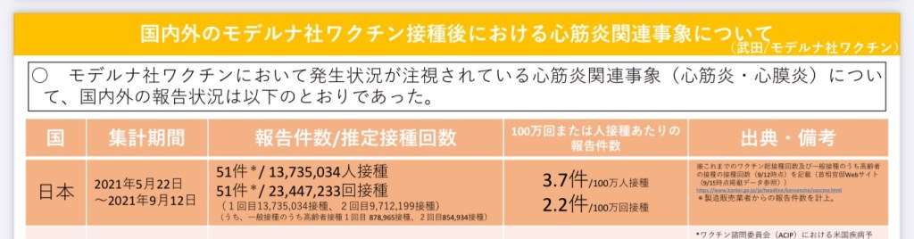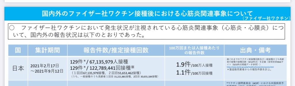 厚労省発表の資料はこのリンクで確認できます。リンク→厚生科学審議会(予防接種・ワクチン分科会副反応検討部会)