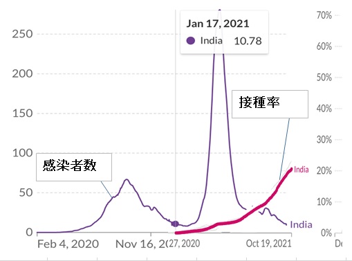 その後もインドではワクチン接種率はあまり上がっていません、直近でも20%いくかどうかです。