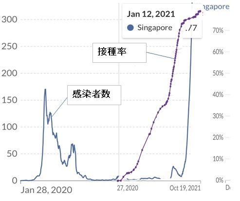 また、ワクチン接種率が増加すれば感染者は減るという傾向は読み取れません。