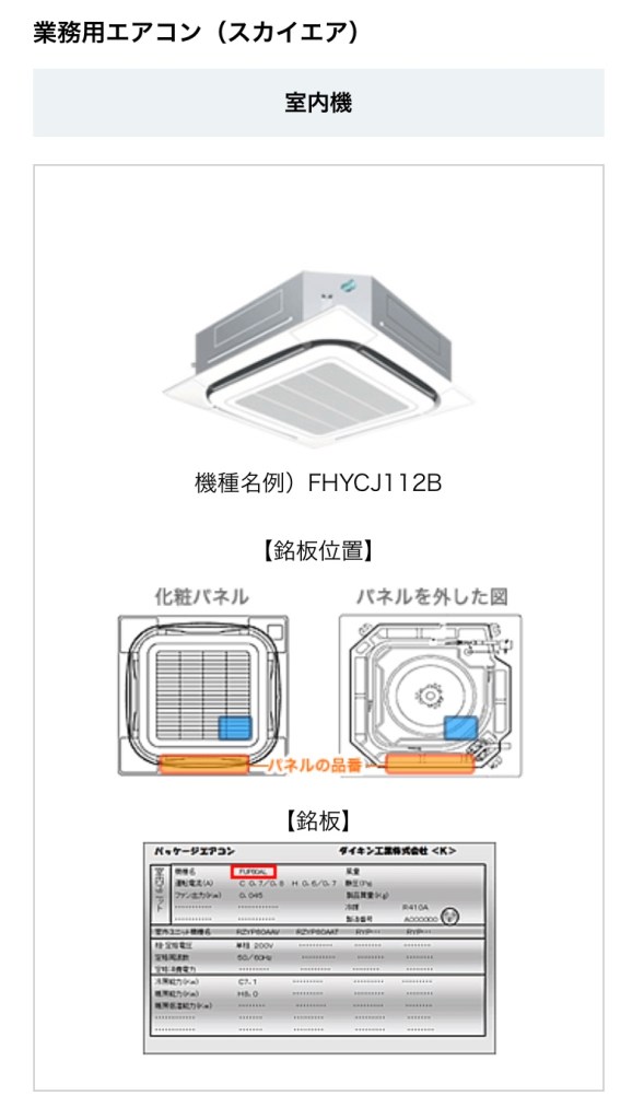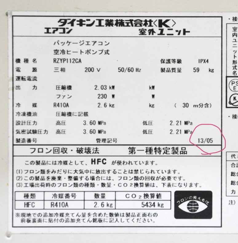 既存利用する空調機の品番と製造時期を確認しておきましょう