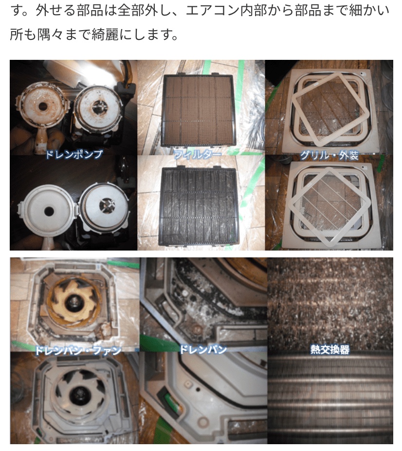 ただの清掃の場合は空調機パネルの表面の汚れの除去とフィルターを取外してほこりを取るために洗って再度戻す程度となります。