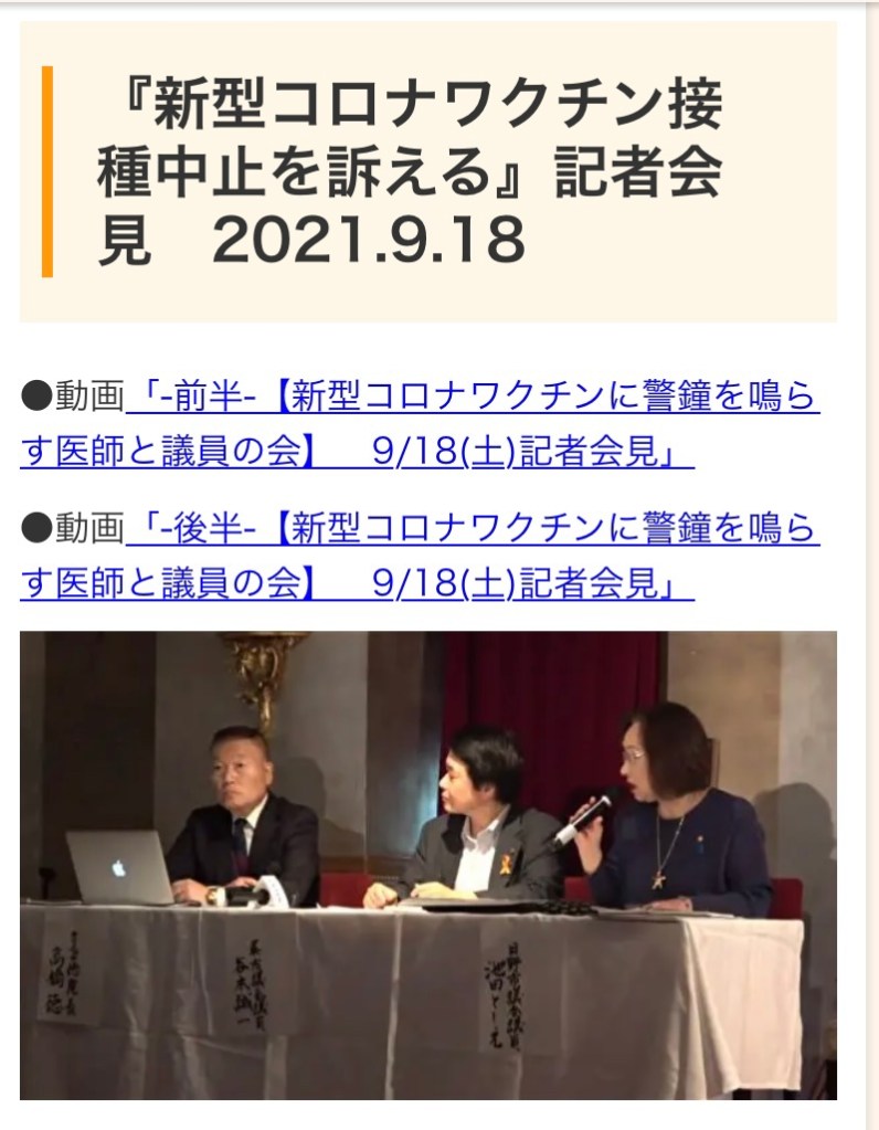ワクチン接種によるリスクがあること、現在ワクチン接種後に1359人が亡くなっていてそのほとんどが因果関係不明で処理されていること、死亡者数はインフルエンザワクチンでは5000万人に打って10人いくかどうかだったので明らかにコロナワクチンの方がはるかに危険性が高いこと、心筋炎の症状が出ている人が増えていること、mRNAワクチンが体内で産生するスパイク蛋白自体に毒性があるという論文をソーク研究所が発表していることなど、本来であればスクープのレベルの情報でもワクチンに都合の悪い話であればテレビや新聞ではほぼ伝えていない。