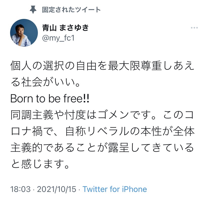 「今ワクチンパスポートのことで大きな争いが起きている。今、有利なところにいる人も忘れるな、明日には誰かがあなたに理不尽な要求をするかもしれない、とても容認できないようなね。