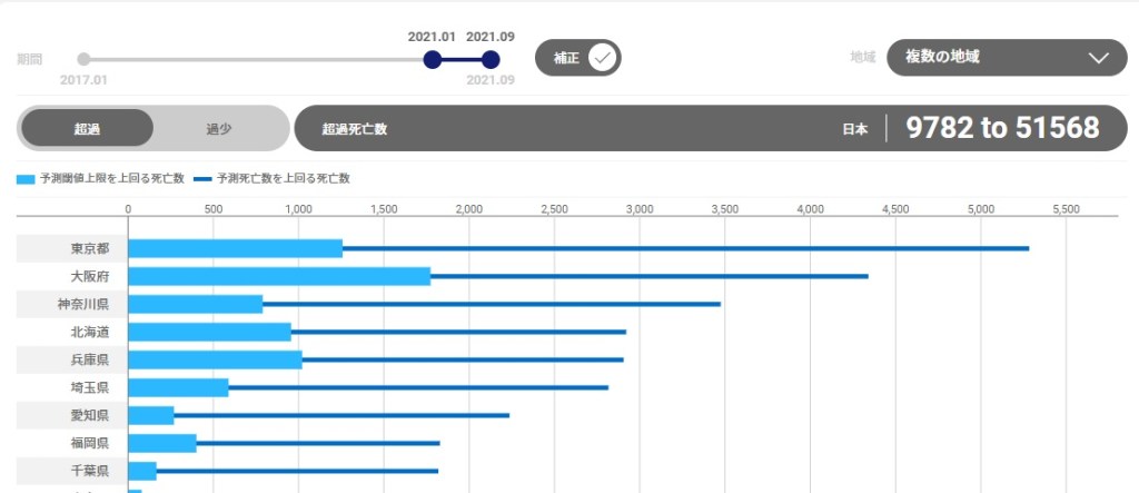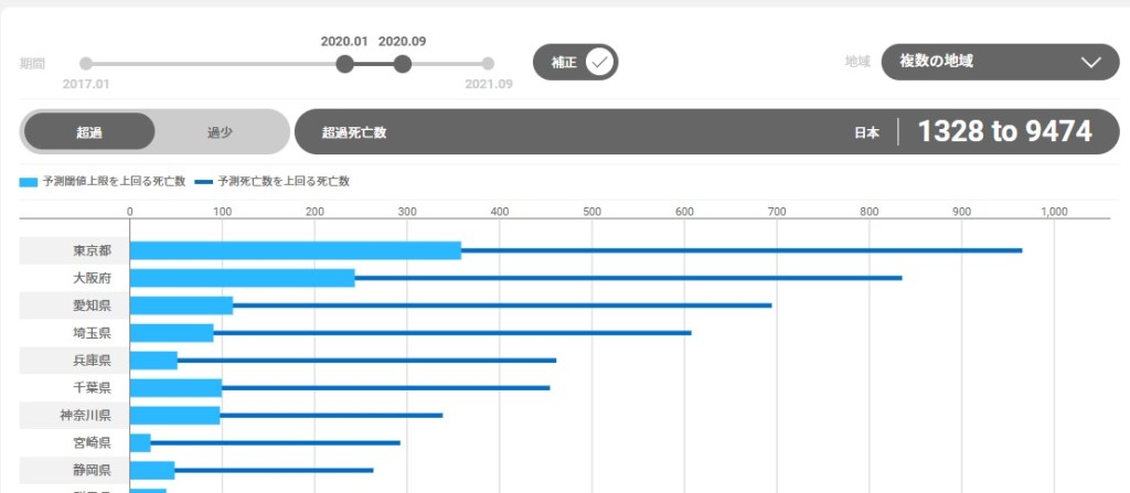 日本の超過および過小死亡数ダッシュボードからのデータを参考にします。