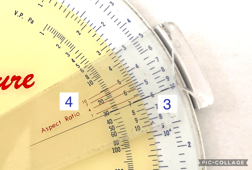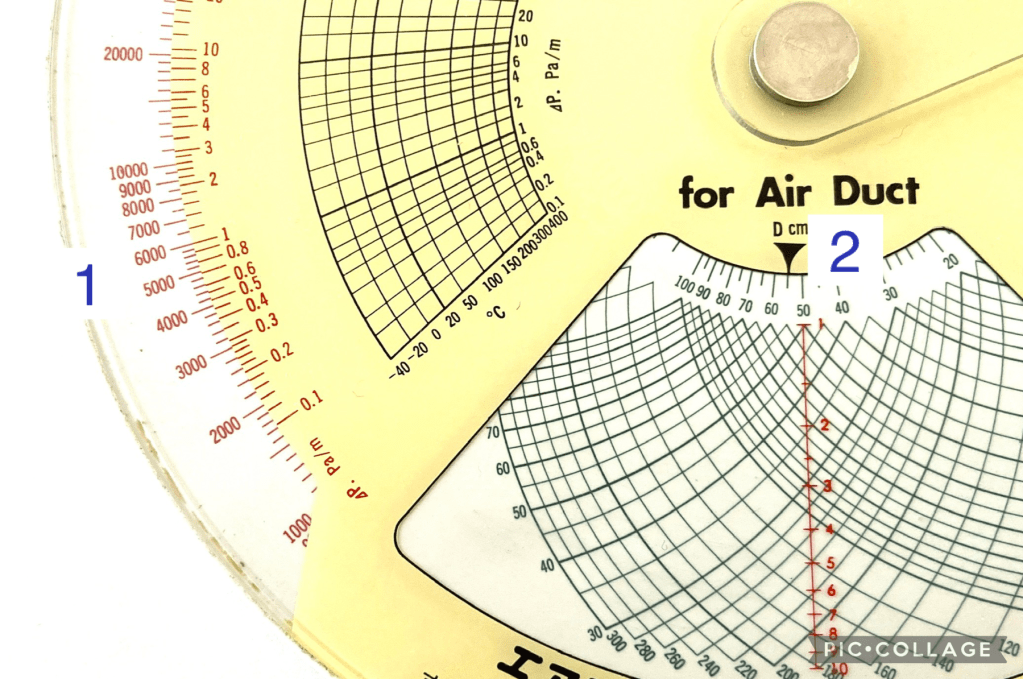 1:まず外側の6000m3/hの目盛りに回転スケールを回して内側の1Pa/mの目盛を合わせます。