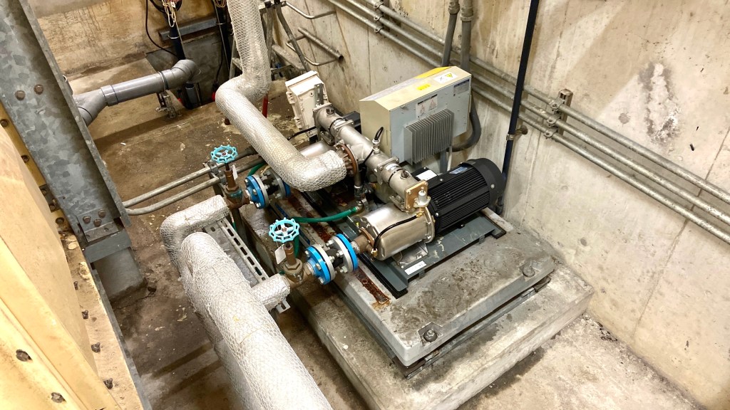 話しをもどして、ポンプ単体では在庫があるとのことで作業員の都合を確認して交換日を設定。マンションや下層階のテナントに断水作業の時間帯などを周知、当日朝、ポンプが納入されて作業開始。