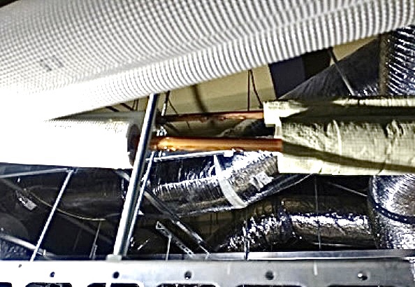 下の写真が冷媒配管の保温材が剥けてしまった部分ですが冷媒配管の銅管が露わになってしまった部分は10数センチにおよんでいます。