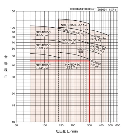 NXF-50×50-3-53.7-e あるいは NXF-65×50-3-55.5-e  が選定されます。