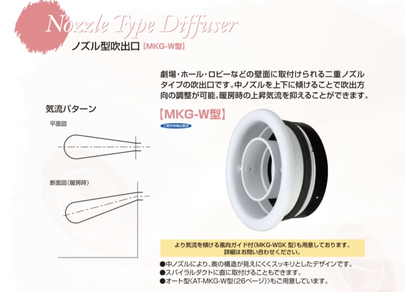 壁面に設置する吹出口でよく見かけるのがノズル型吹出口です。
