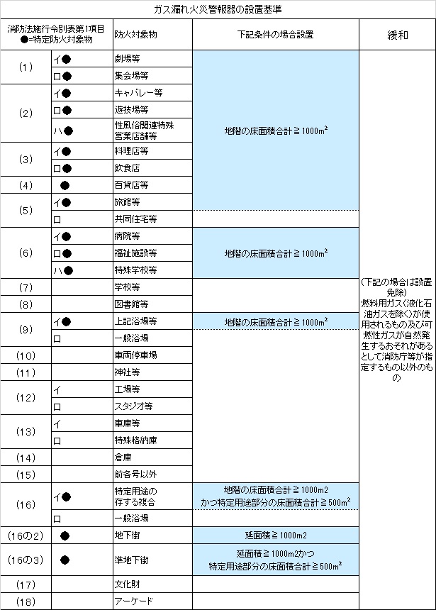 ガス漏れ火災警報器の設置基準
